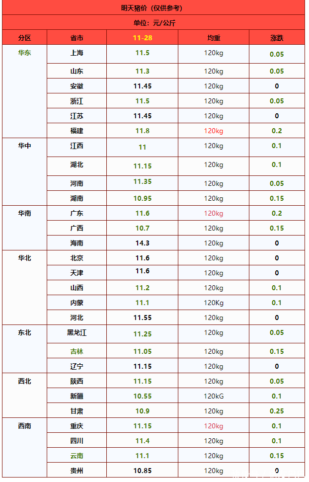 据数据显示,受屠宰场调价,预估,11月28日,外三元标猪报价在11.34元/公斤,后市关注集团猪企出栏以及需求跟进的变化!